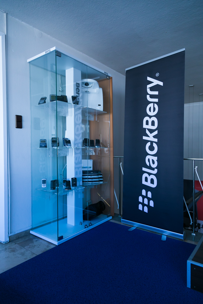 Umfangreiche Ausstellung von BlackBerry-Geräten inkl. Informationen