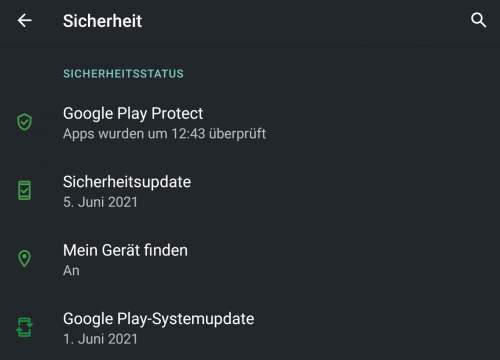 Ihr könnt dieses unter Einstellungen --> Sicherheit --> Google Play-Systemupdate abrufen. Das Update hat den Stand 01.06.2021.