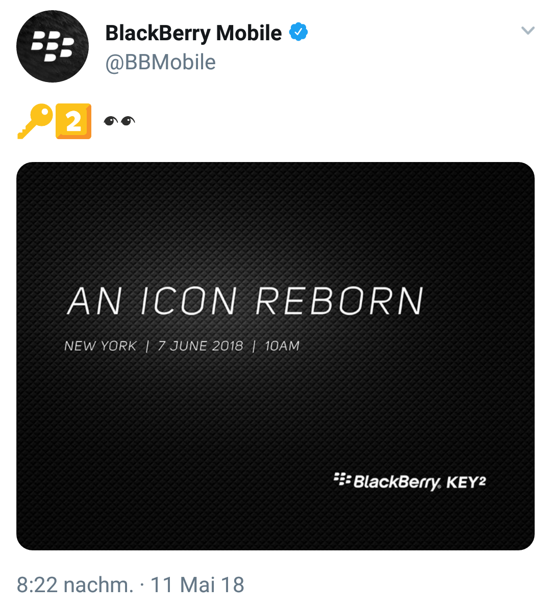 Somit wird am 07. Juni 2018 in New York das BlackBerry KEY2 vorgestellt!