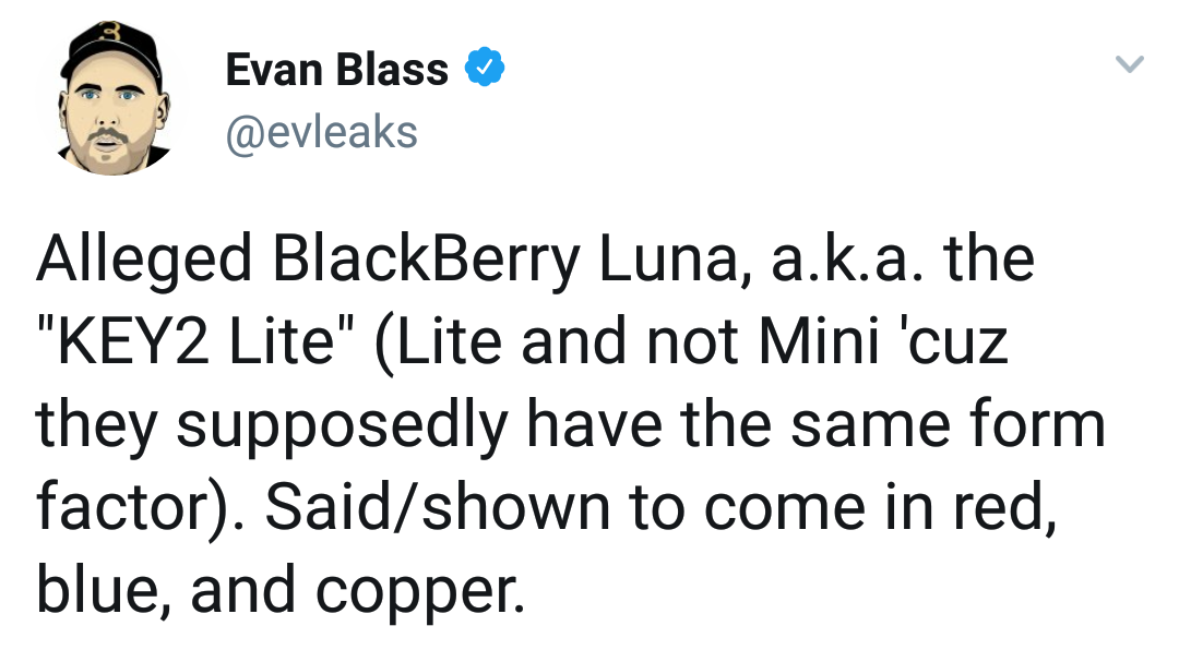 KEY2 lite ist auch die Wortwahl von Evan Blass, der erneut via Twitter neue Informationen zum Luna und auch ein Foto veröffentlicht hat.